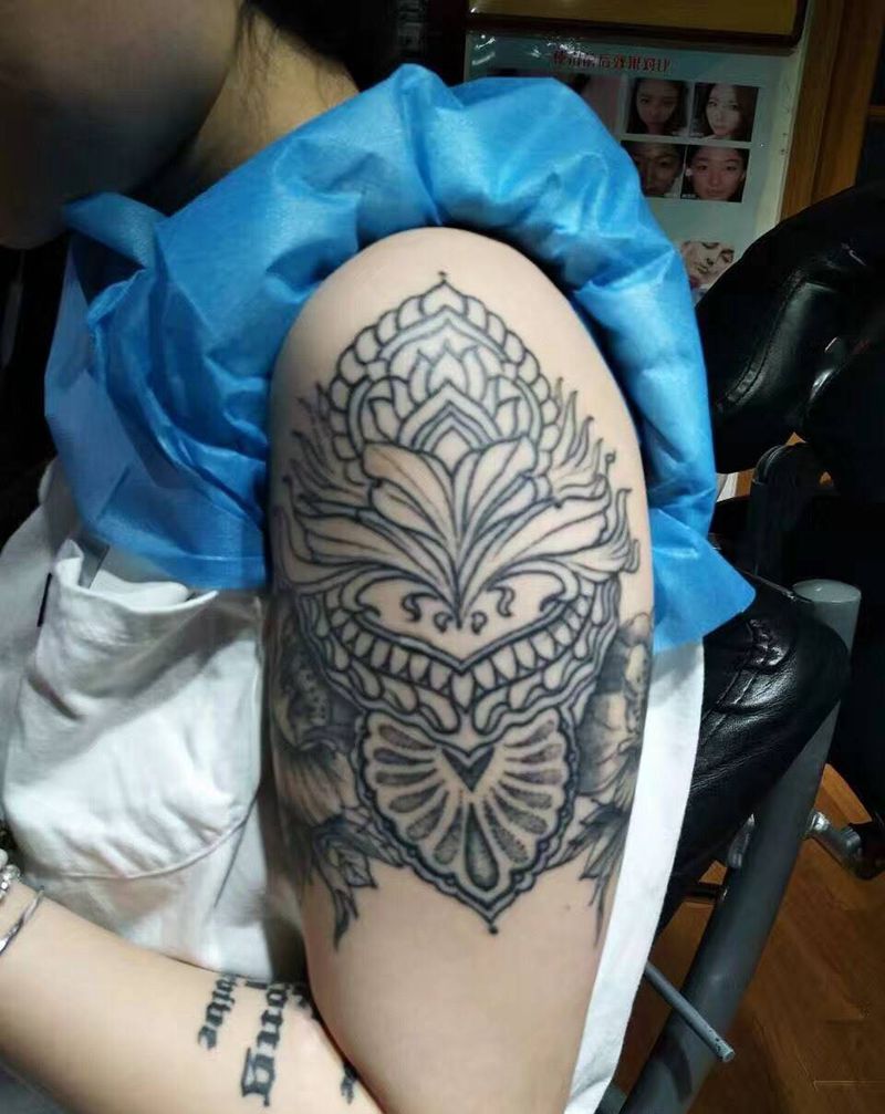 修改遮盖前后对比纹身图片_成品遮盖原创清新国画手臂纹身图案