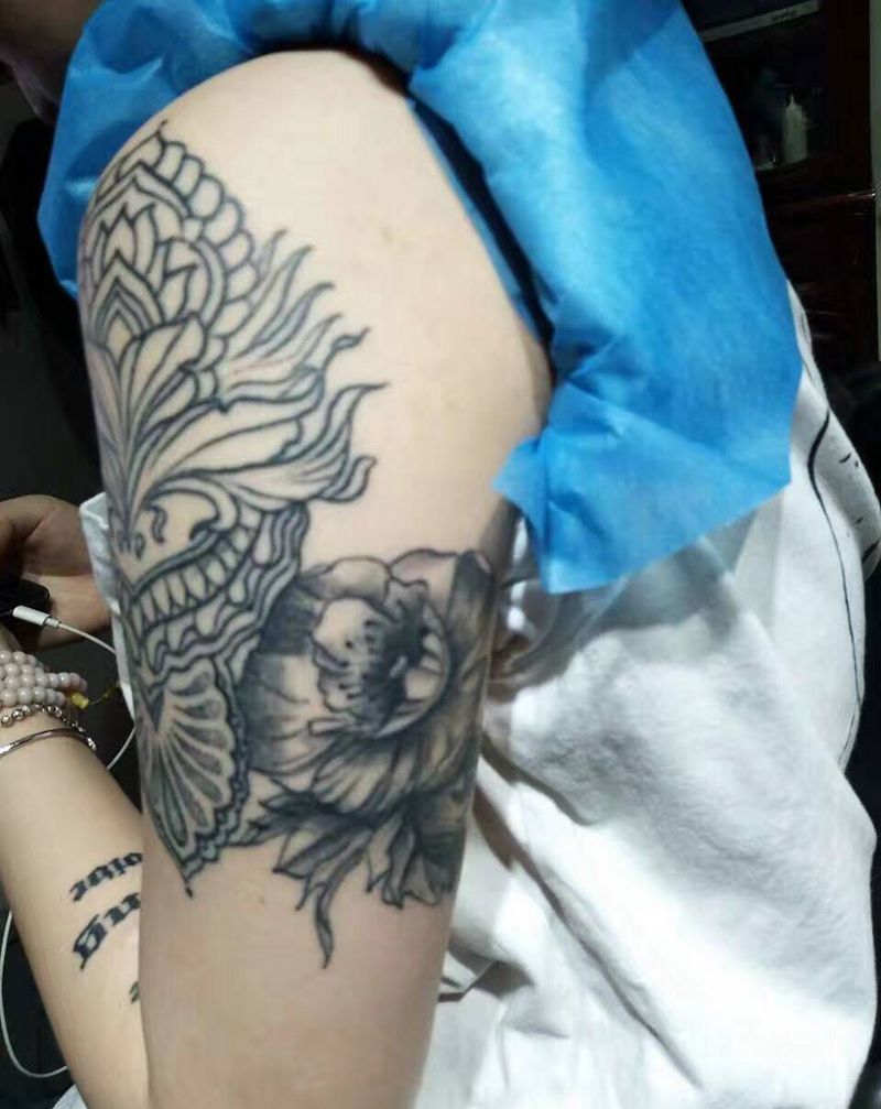 修改遮盖前后对比纹身图片_成品遮盖原创清新国画手臂纹身图案
