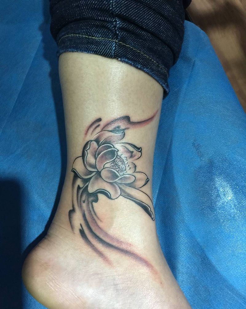 当前位置: 首页 >吉林省长春市纹身店-彫客堂刺青纹身图案>荷花纹身图片_成品腿部清新植物纹身图案