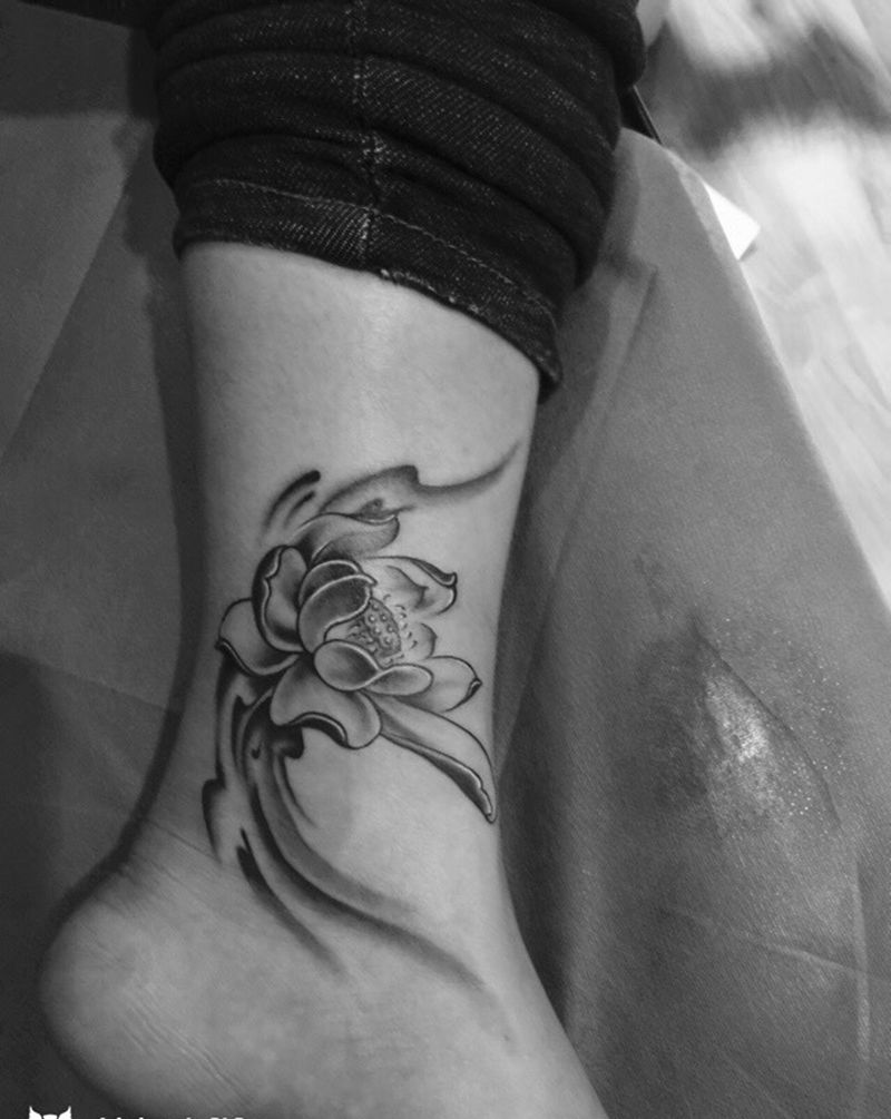 当前位置: 首页 >吉林省长春市纹身店-彫客堂刺青纹身图案>荷花纹身图片_成品腿部清新植物纹身图案