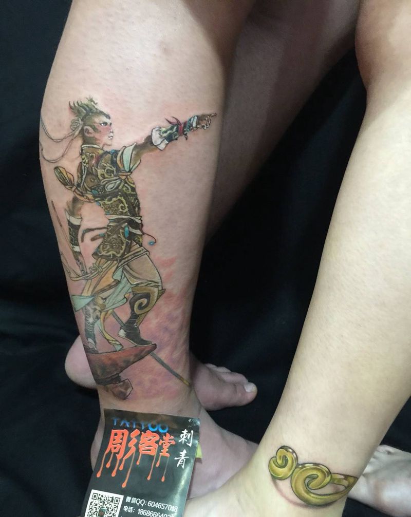 孙悟空金箍 情侣纹身你看懂了吗纹身图片_成品腿部脚部写实国画人物原创鬼神纹身图案