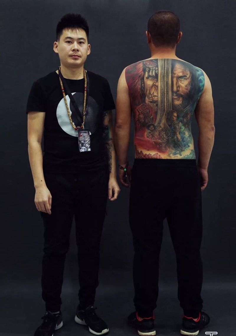 黑灰满背纹身图案