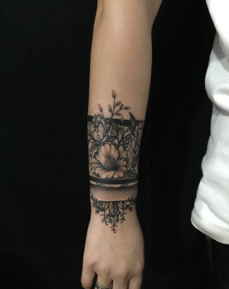 当前位置: 首页 >吉林省长春市纹身店-彫客堂刺青纹身图案>点刺小花环纹身图片_成品手臂清新字符植物纹身图案