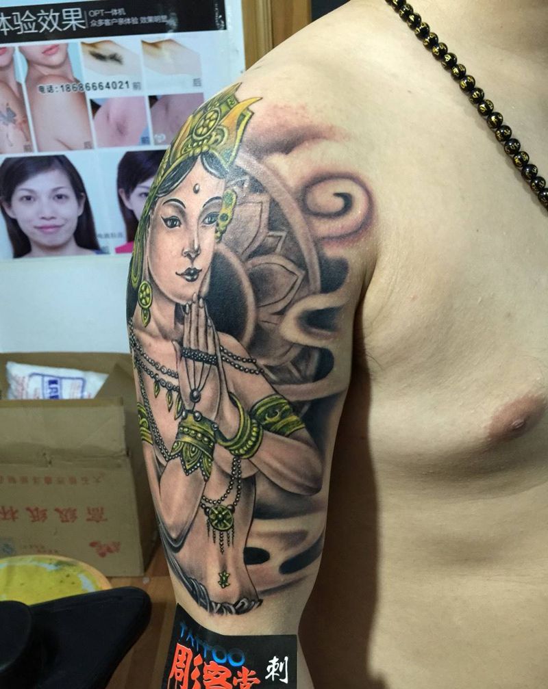 菩萨纹身图片_成品手臂肖像人物纹身图案