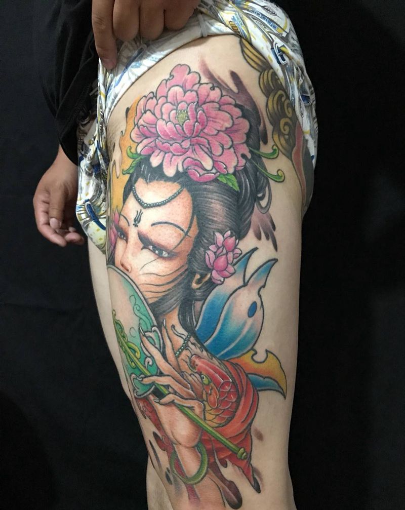 当前位置: 首页 >吉林省长春市纹身店-彫客堂刺青纹身图案>古风美女纹身图片_成品腿部传统人物纹身图案