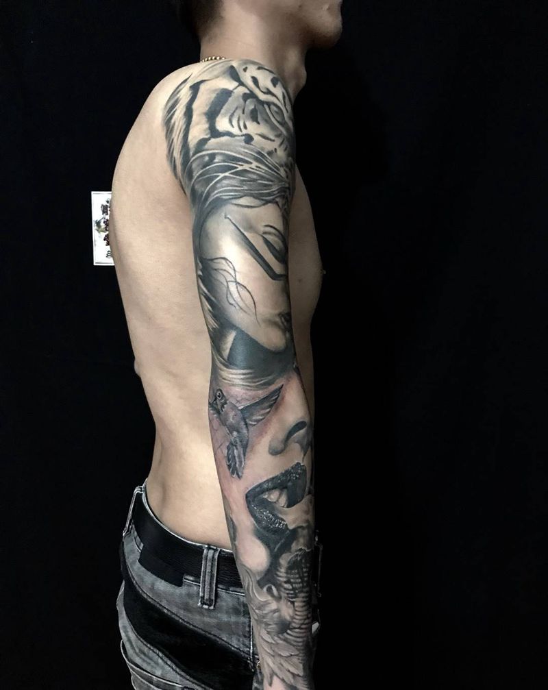 当前位置: 首页 >吉林省长春市纹身店-彫客堂刺青纹身图案>欧美黑灰花臂 以顾客要求设计纹身图片_成品手臂欧美人物原创纹身图案