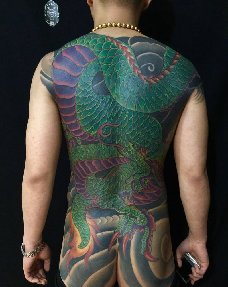 • T云龙九郎纹身图片_背部老传统云龙九郎纹身图案