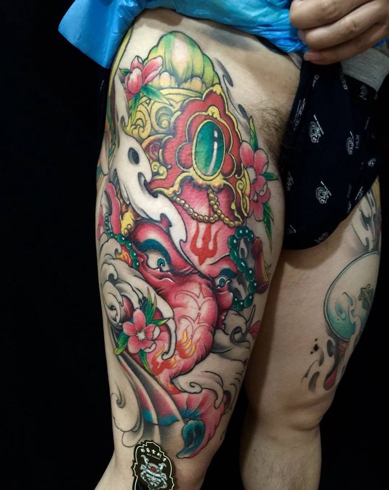 当前位置: 首页 >吉林省长春市纹身店-彫客堂刺青纹身图案>骚粉象神纹身图片_成品腿部传统动物纹身图案