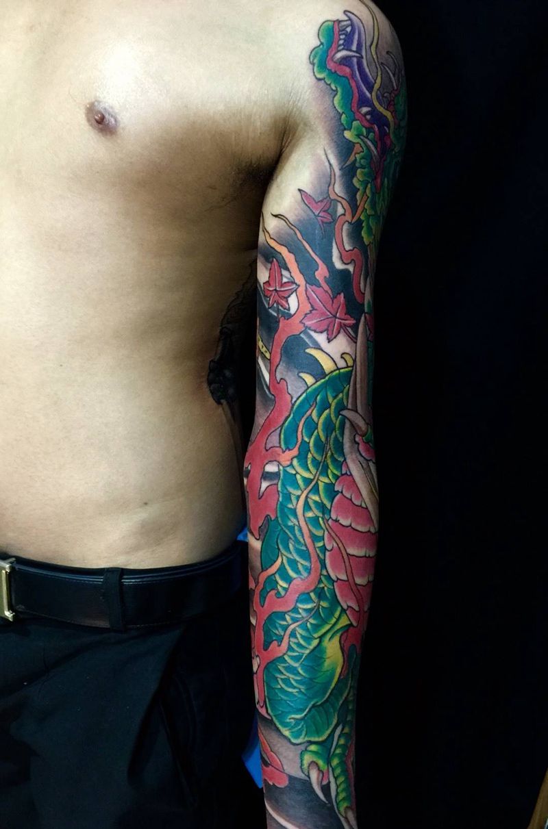 当前位置: 首页 >吉林省长春市纹身店-彫客堂刺青纹身图案>青龙花臂纹身图片_成品手臂传统鬼神原创纹身图案