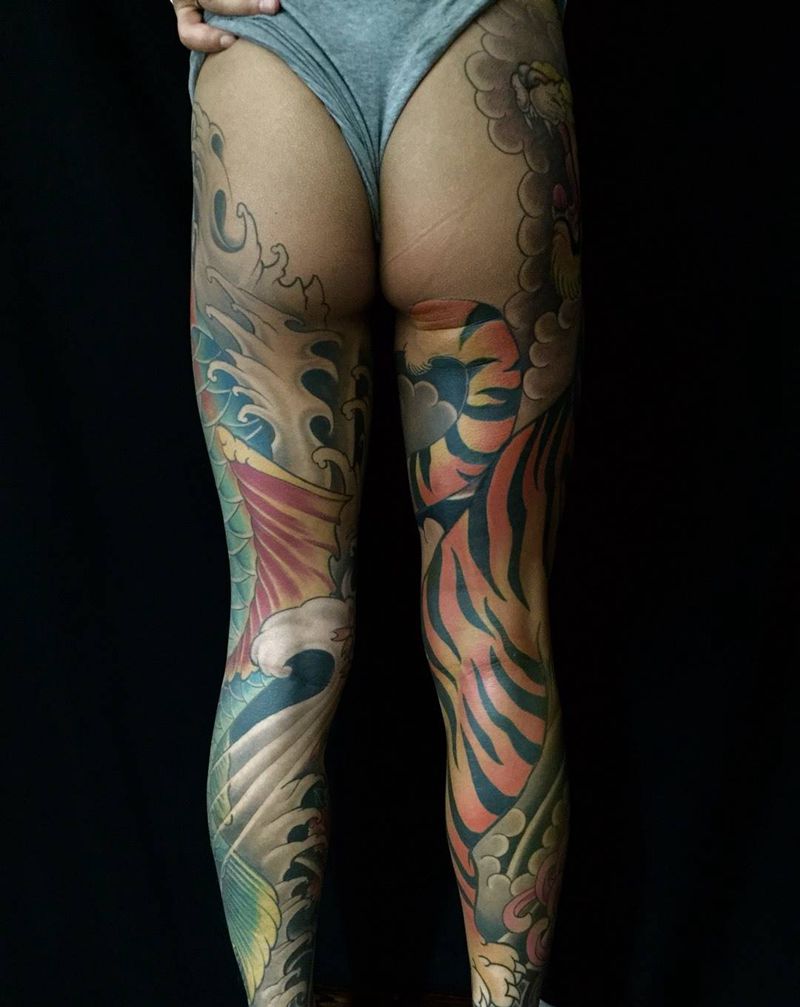 • T网红王老大花腿龙纹身图片_腿部新传统纹身图案