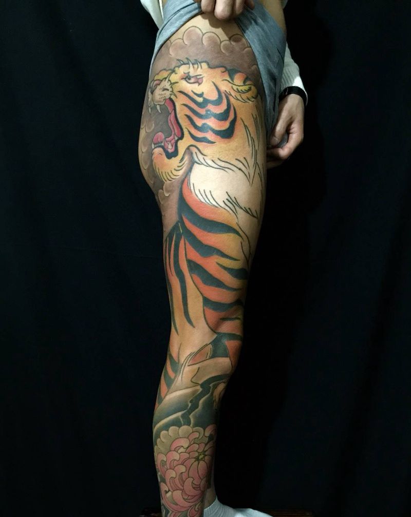 • T网红王老大花腿龙纹身图片_腿部新传统纹身图案