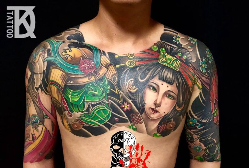 当前位置: 首页 >吉林省长春市纹身店-彫客堂刺青纹身图案>花胸加两个大臂纹身图片_胸部手臂新传统纹身图案