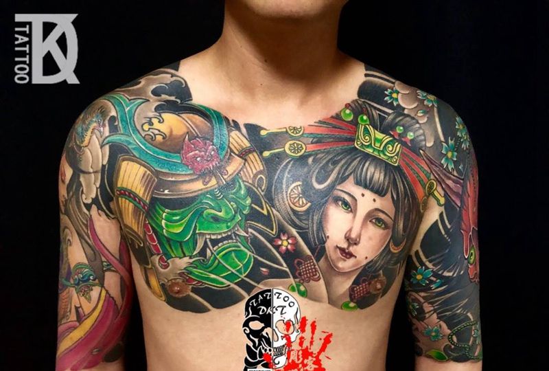 当前位置: 首页 >吉林省长春市纹身店-彫客堂刺青纹身图案>花胸加两个大臂纹身图片_胸部手臂新传统纹身图案
