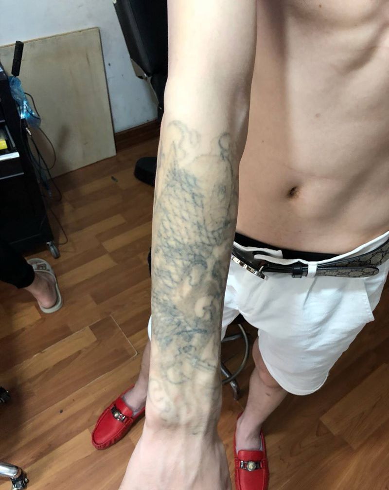 当前位置: 首页 >吉林省长春市纹身店-彫客堂刺青纹身图案>遮盖未完成待续纹身图片_手臂传统国画植物动物纹身图案