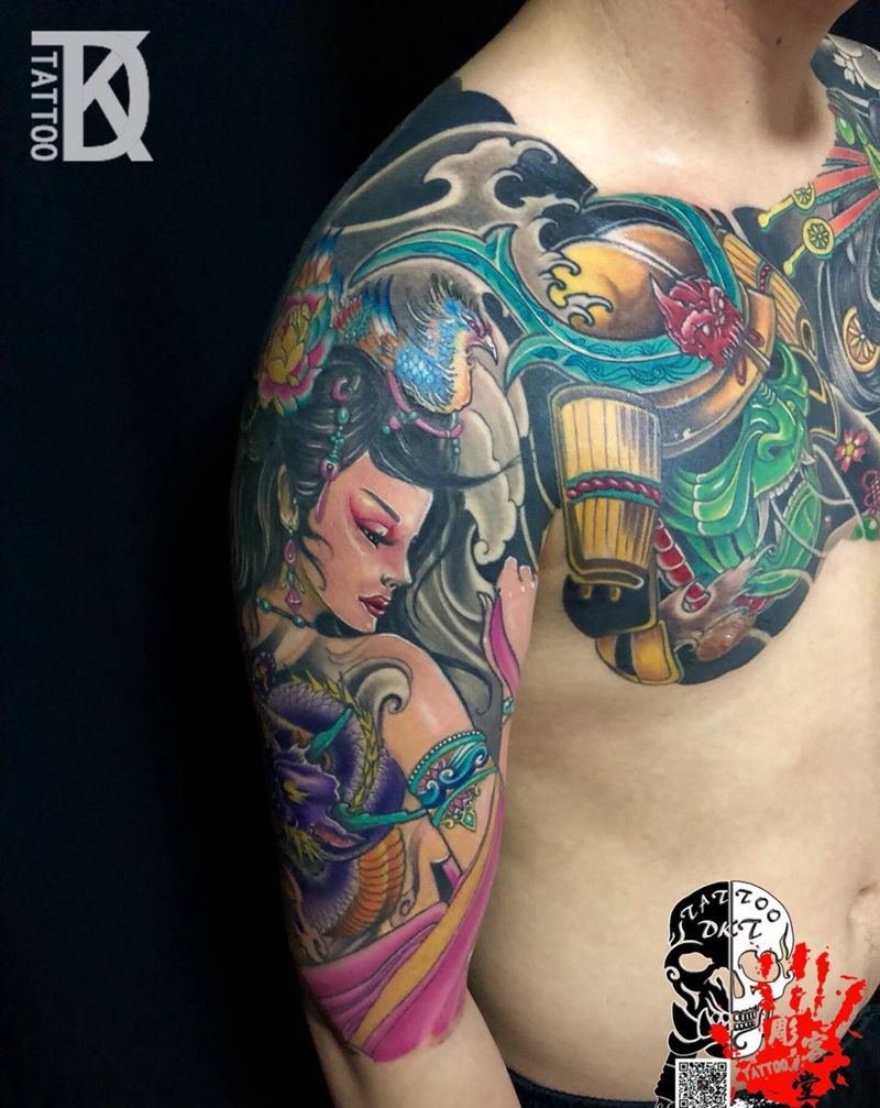 胳膊部分仕女纹身图片_手臂传统人物纹身图案