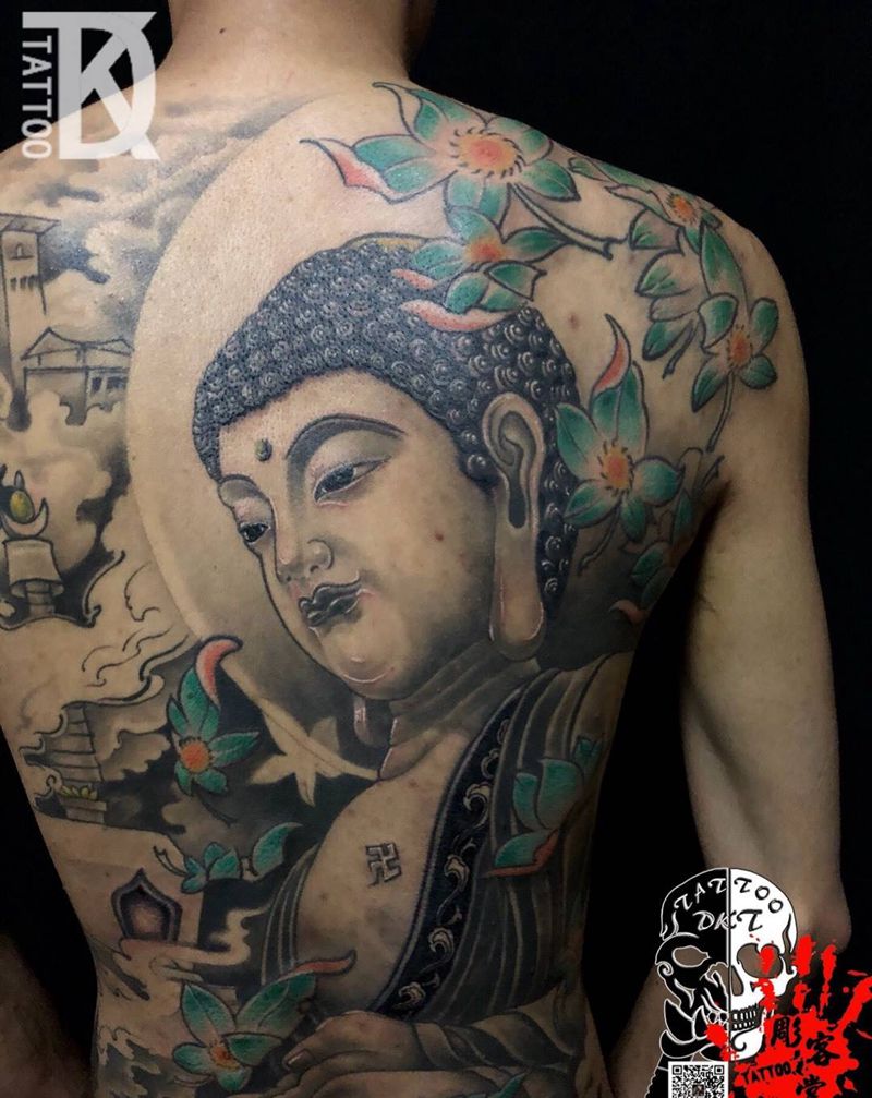 满背佛纹身图片_背部新传统纹身图案