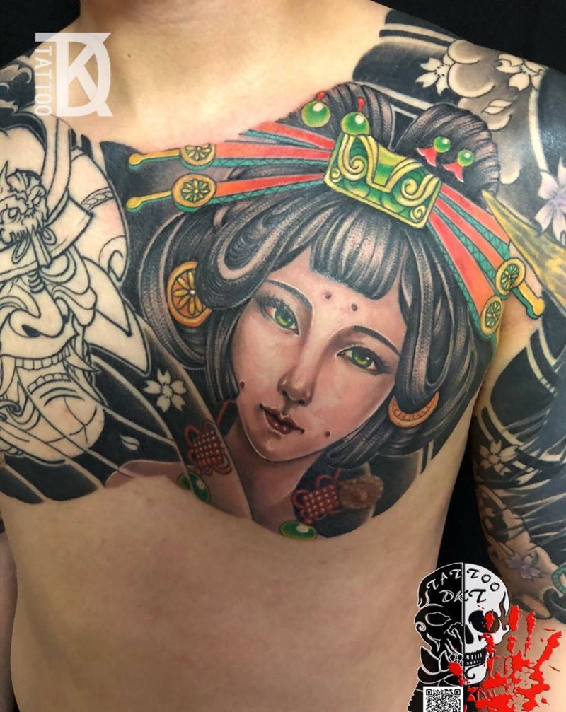 花胸 未完成待续纹身图片_胸部传统人物纹身图案