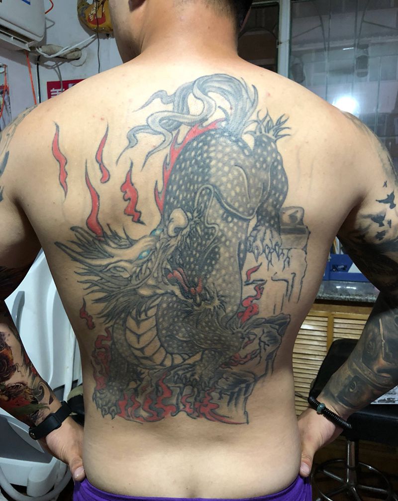 当前位置: 首页 >吉林省长春市纹身店-彫客堂刺青纹身图案>满背全甲龙遮盖 线条部分纹身图片_背部传统原创动物纹身图案