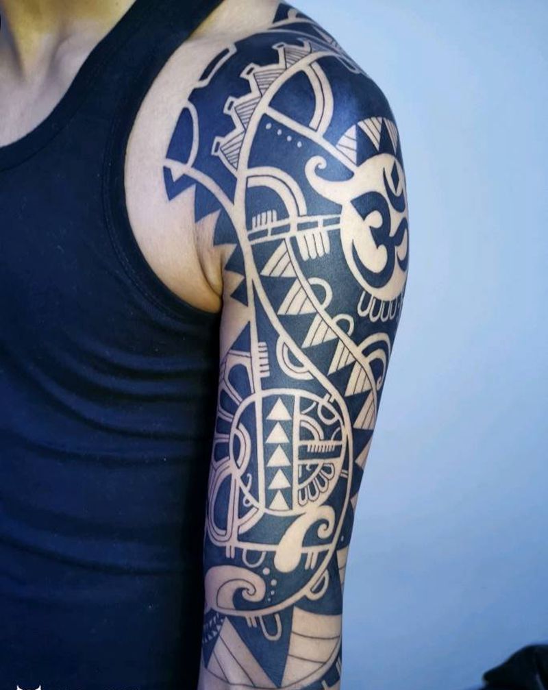 当前位置: 首页 >吉林省长春市纹身店-彫客堂刺青纹身图案>外国友人大臂玛雅图腾纹身图片_手臂图腾纹身图案