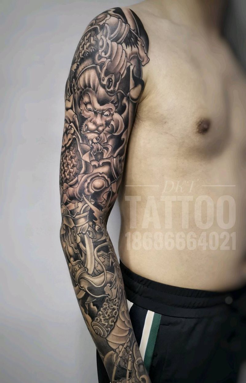 黑灰满背纹身图案