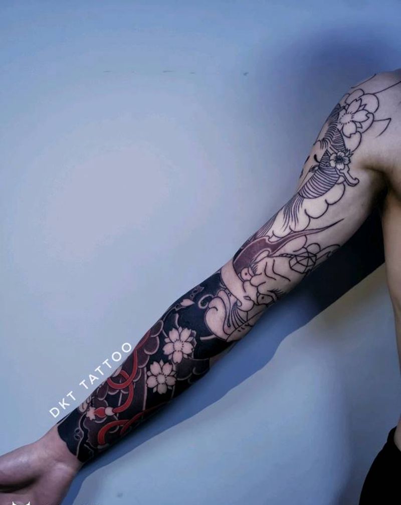 网红吴迪浪子团队花臂进行中纹身图片_手臂老传统纹身图案