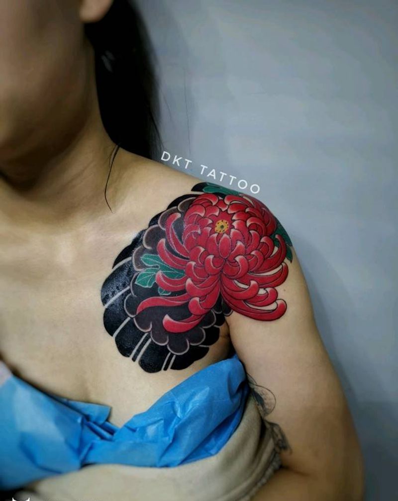 • 女性大花胸纹身_43张霸气漂亮的女性大花胸纹身图案作品