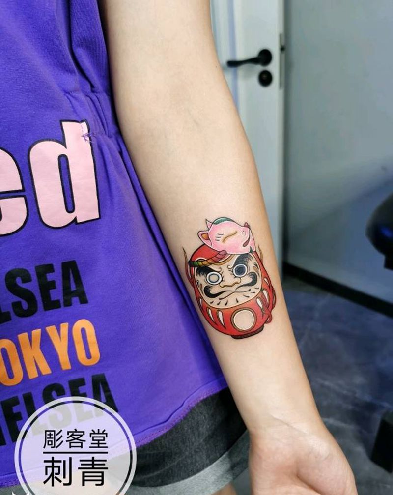 达摩蛋纹身图片_手臂新传统老传统纹身图案