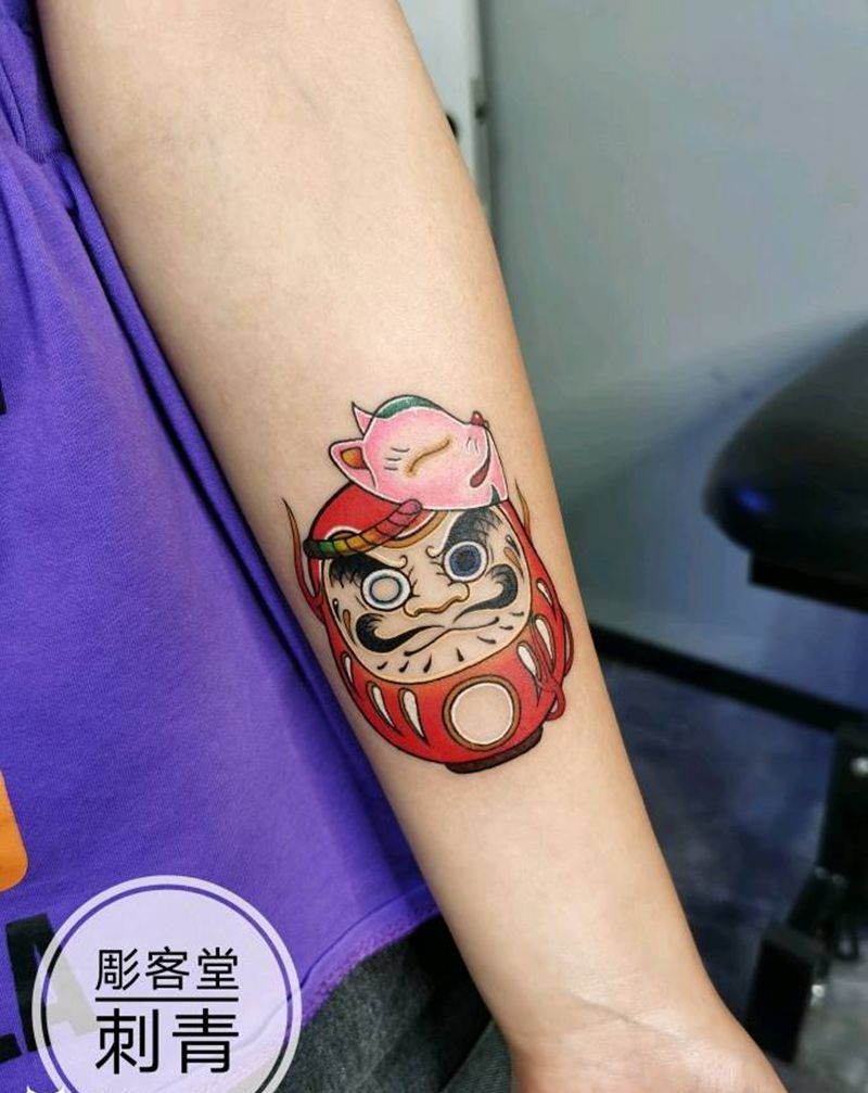 达摩蛋纹身图片_手臂新传统老传统纹身图案