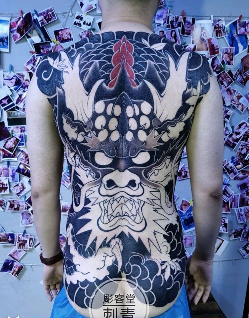 黑灰满背纹身图案