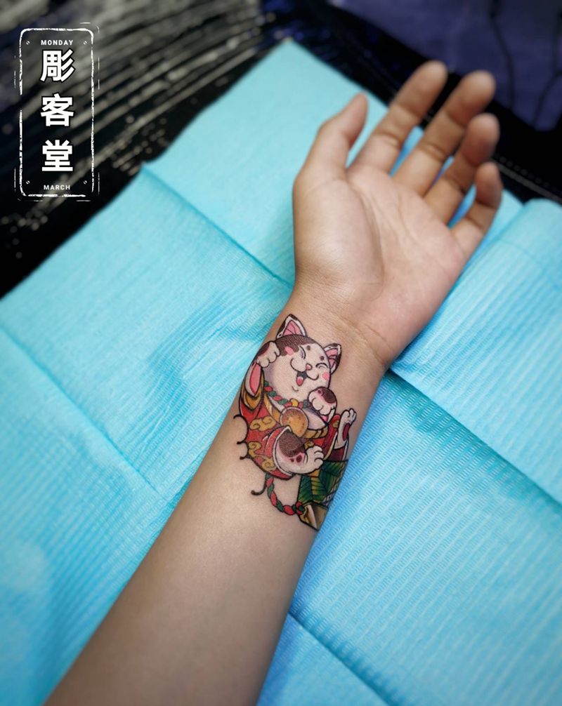 当前位置: 首页 >吉林省长春市纹身店-彫客堂刺青纹身图案>招财猫遮盖作品纹身图片_手臂纹身图案
