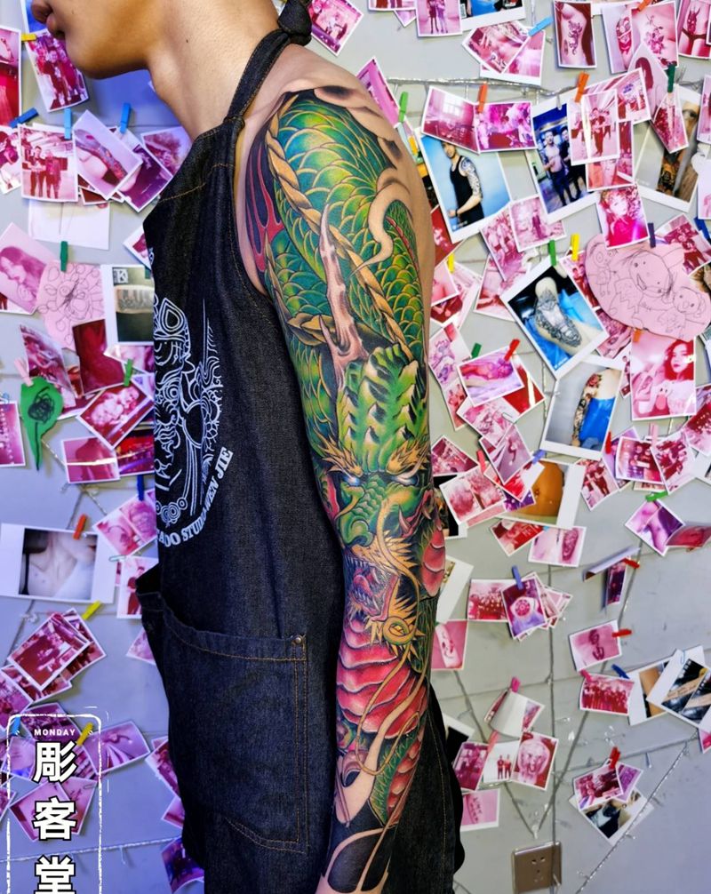 当前位置: 首页 >吉林省长春市纹身店-彫客堂刺青纹身图案>青龙花臂纹身图片_手臂新传统龙纹身图案
