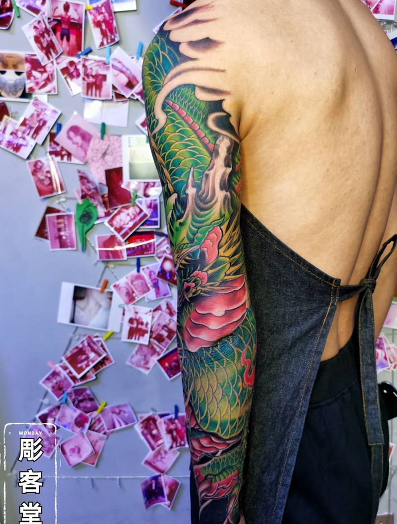 当前位置: 首页 >吉林省长春市纹身店-彫客堂刺青纹身图案>青龙花臂纹身图片_手臂新传统龙纹身图案