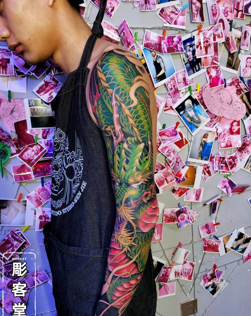 当前位置: 首页 >吉林省长春市纹身店-彫客堂刺青纹身图案>青龙花臂纹身图片_手臂新传统龙纹身图案