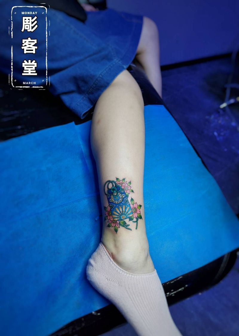 当前位置: 首页 >吉林省长春市纹身店-彫客堂刺青纹身图案>脚踝纹身小吊牌遮盖作品纹身图片_腿部新传统遮盖纹身图案