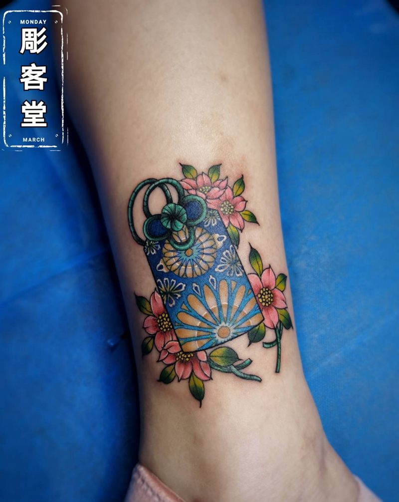 当前位置: 首页 >吉林省长春市纹身店-彫客堂刺青纹身图案>脚踝纹身小吊牌遮盖作品纹身图片_腿部新传统遮盖纹身图案