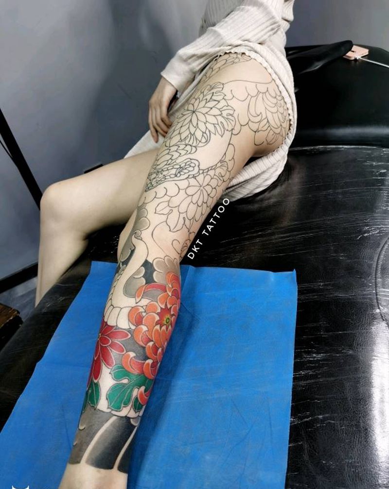 当前位置: 首页 >吉林省长春市纹身店-彫客堂刺青纹身图案>老传统菊花蛇花腿纹身图片_腿部老传统纹身图案