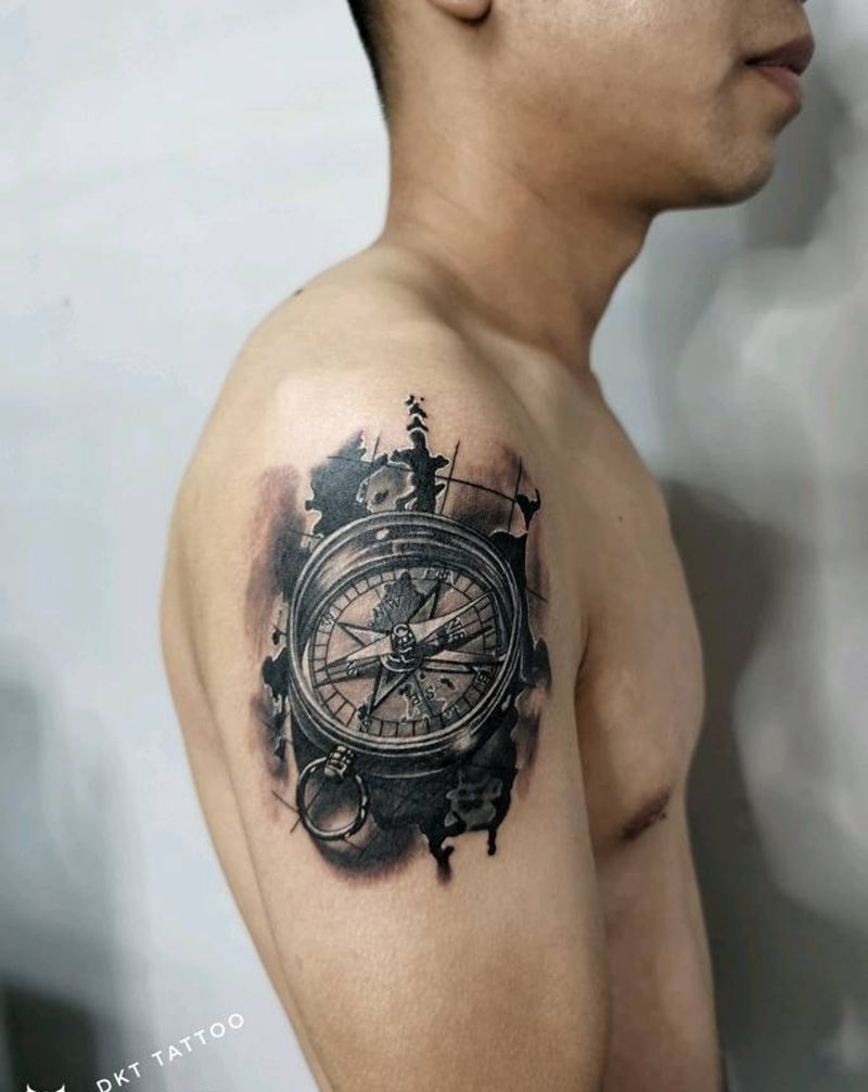 当前位置: 首页 >吉林省长春市纹身店-彫客堂刺青纹身图案>指南针遮盖作品纹身图片_手臂欧美写实遮盖纹身图案
