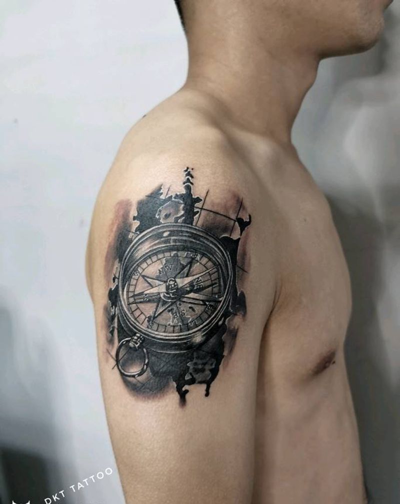 当前位置: 首页 >吉林省长春市纹身店-彫客堂刺青纹身图案>指南针遮盖作品纹身图片_手臂欧美写实遮盖纹身图案
