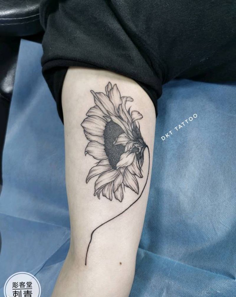 当前位置: 首页 >吉林省长春市纹身店-彫客堂刺青纹身图案>素花向日葵纹身图片_手臂点刺纹身图案