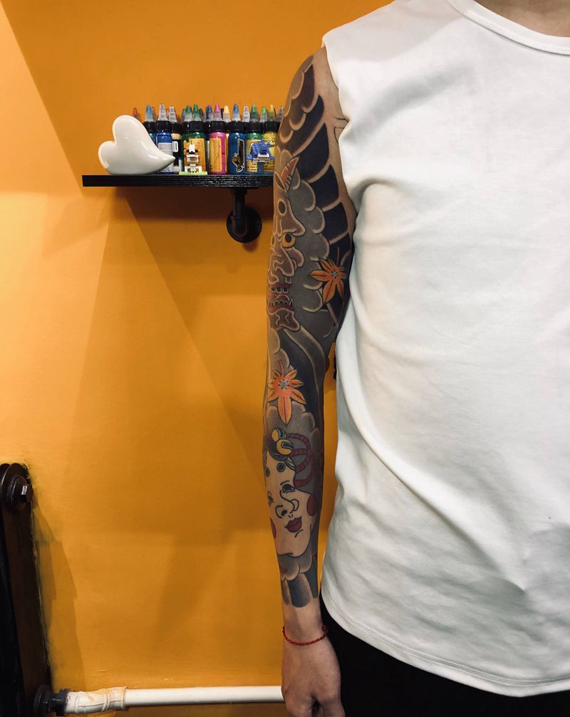 当前位置: 首页 >吉林省长春市纹身店-金楹刺青纹身图案>日式阿多福般若花臂纹身图片_肩部手臂老传统新传统纹身图案