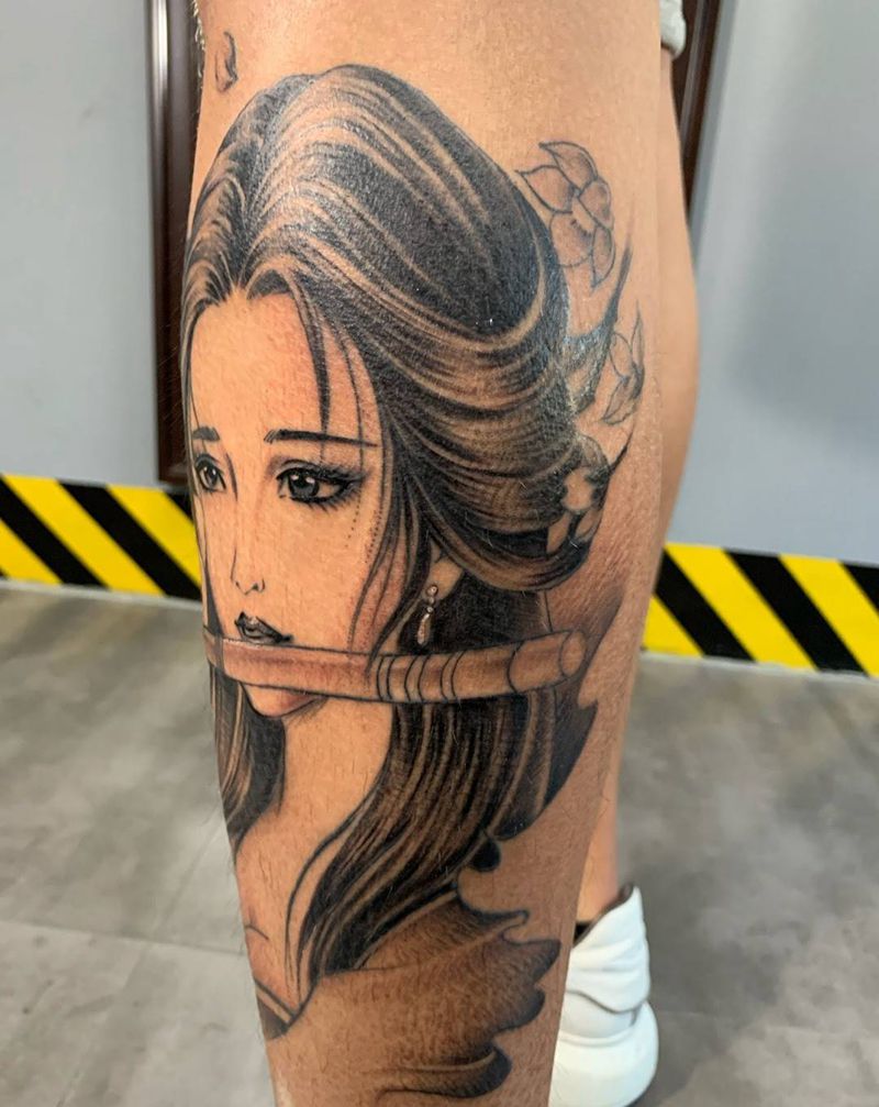 • T包小腿吹火男+阿多福纹身图片_腿部老传统新传统吹火男阿