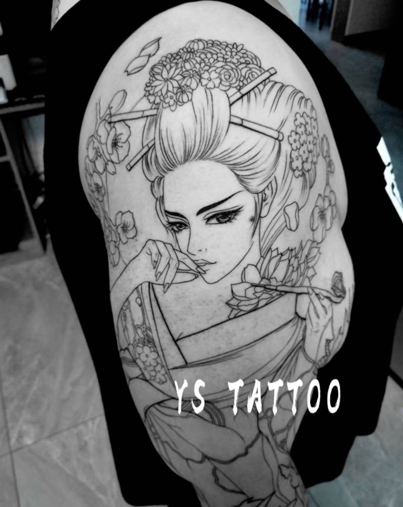 • 女性大花胸纹身_43张霸气漂亮的女性大花胸纹身图案作品