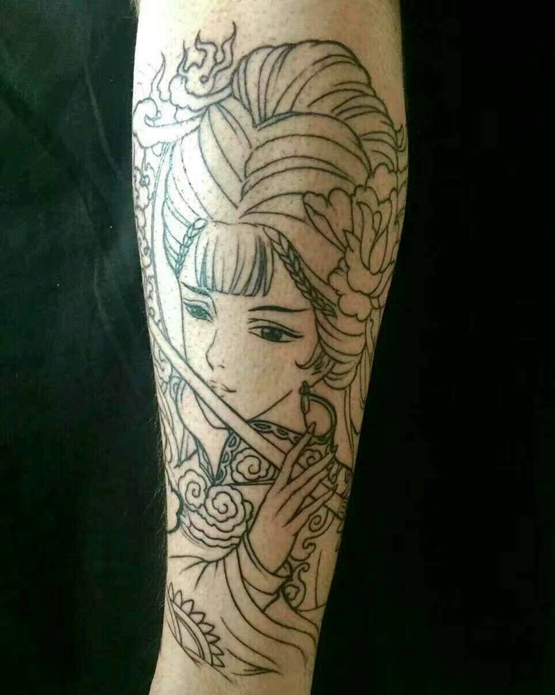 当前位置: 首页 >吉林省长春市纹身店-长春義色刺青纹身图案>包小腿彩色艺妓纹身图片