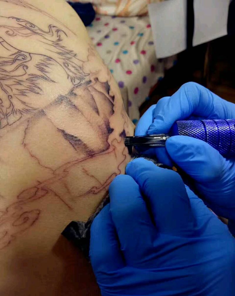 • T网红王老大花腿龙纹身图片_腿部新传统纹身图案
