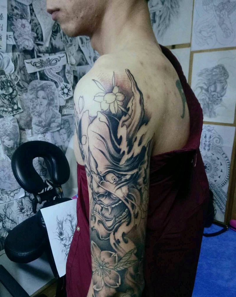 当前位置: 首页 >吉林省长春市纹身店-长春義色刺青纹身图案>花臂上色未完成纹身图片