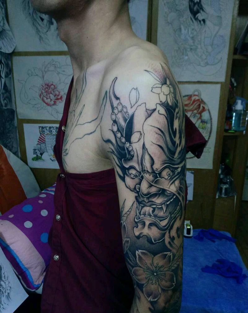 当前位置: 首页 >吉林省长春市纹身店-长春義色刺青纹身图案>花臂上色未完成纹身图片