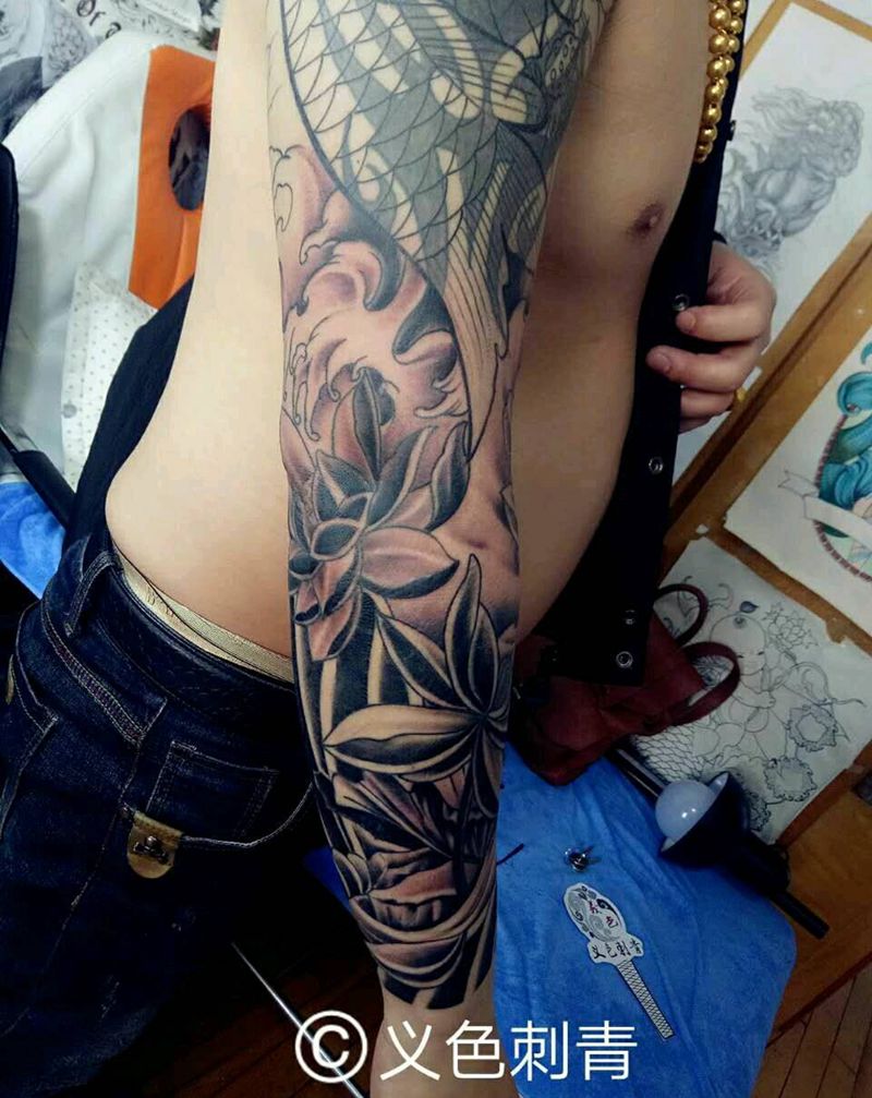 一组15张莲花纹身手