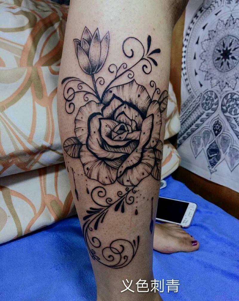 一组15张莲花纹身手