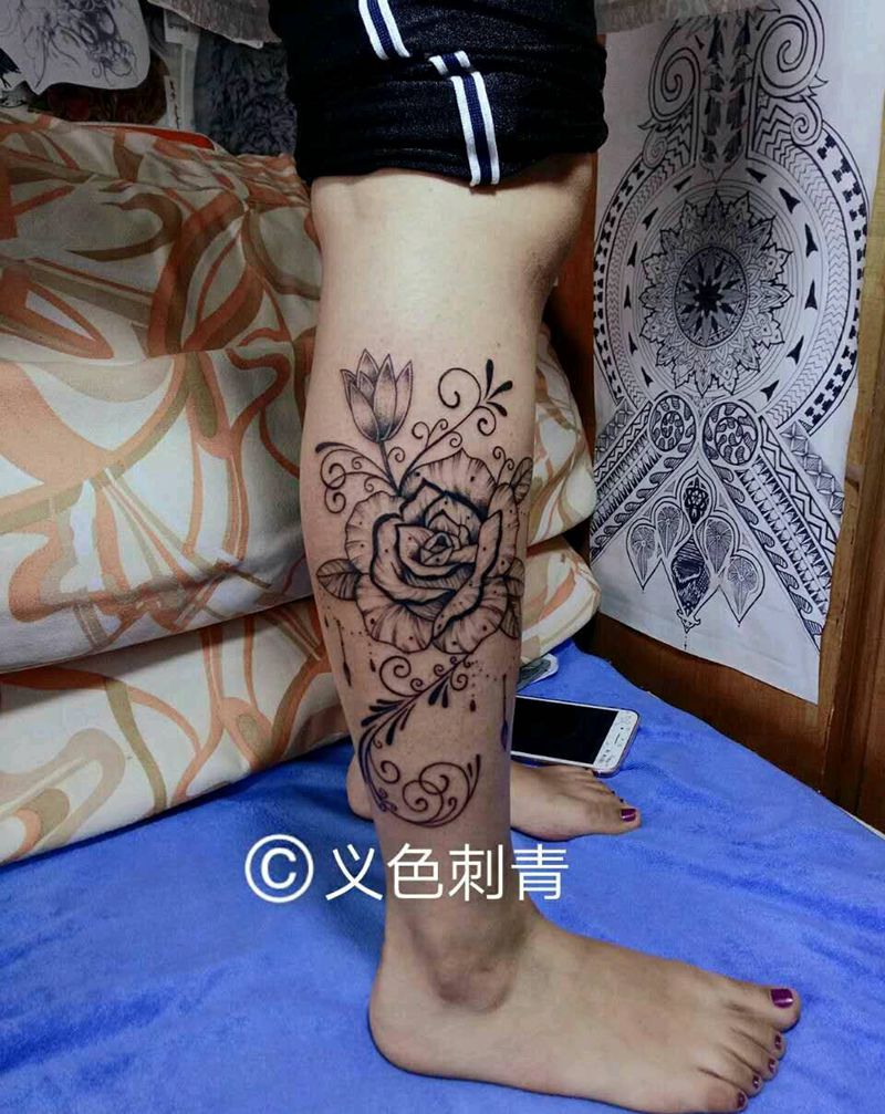 • T网红王老大花腿龙纹身图片_腿部新传统纹身图案