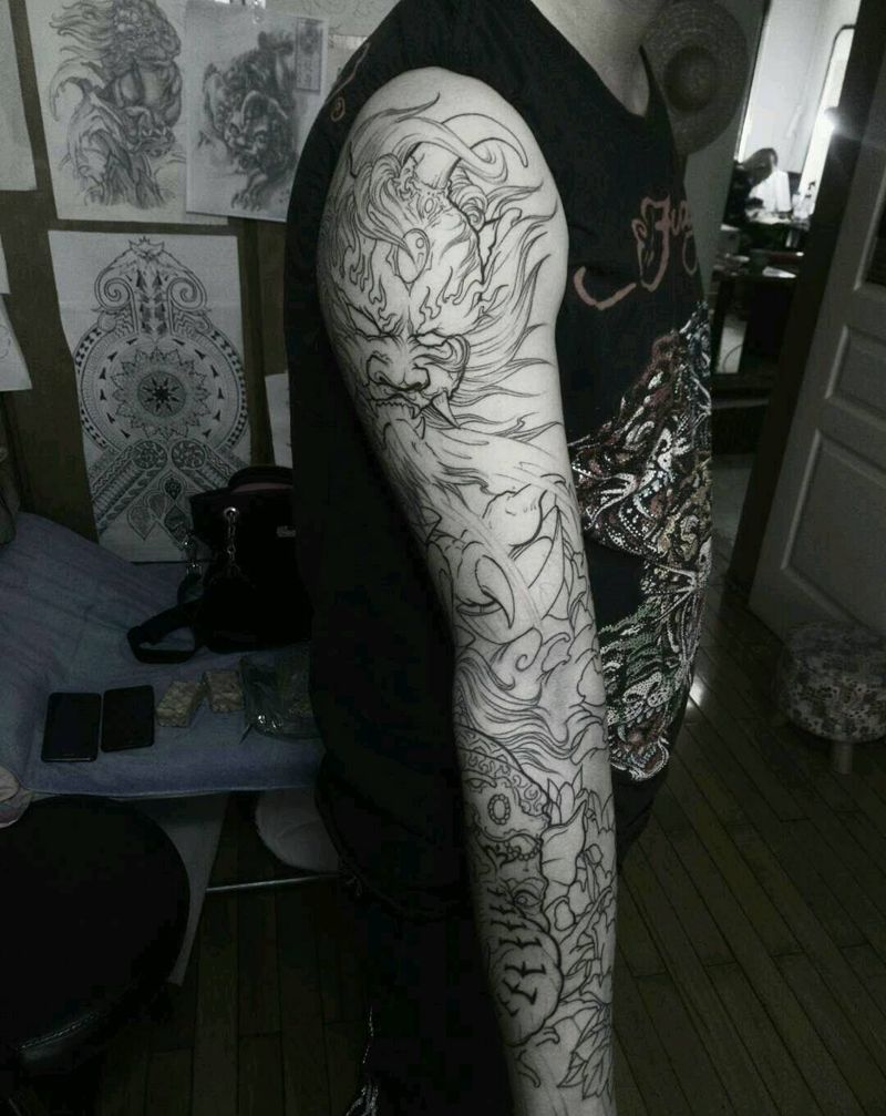 当前位置: 首页 >吉林省长春市纹身店-长春義色刺青纹身图案>花臂线条纹身图片